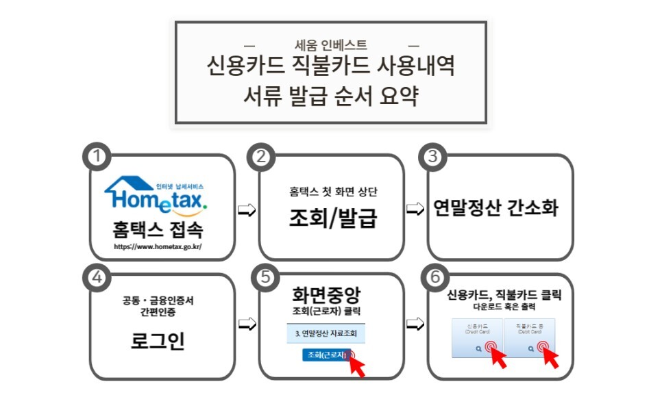 국세청/홈택스를 통하면 이용중인 모든 신용카드, 직불카드의 전년도 사용내역을 발급할 수있습니다.